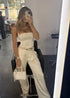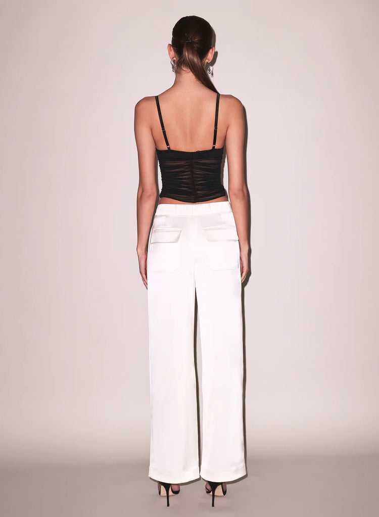 Fleur du Mal's Satin Trouser, featuring a comfortable, relaxed fit with front pleats. Low rise with front and back pockets. Pair with the Satin Halter Corset Top for a chic, monochromatic look.