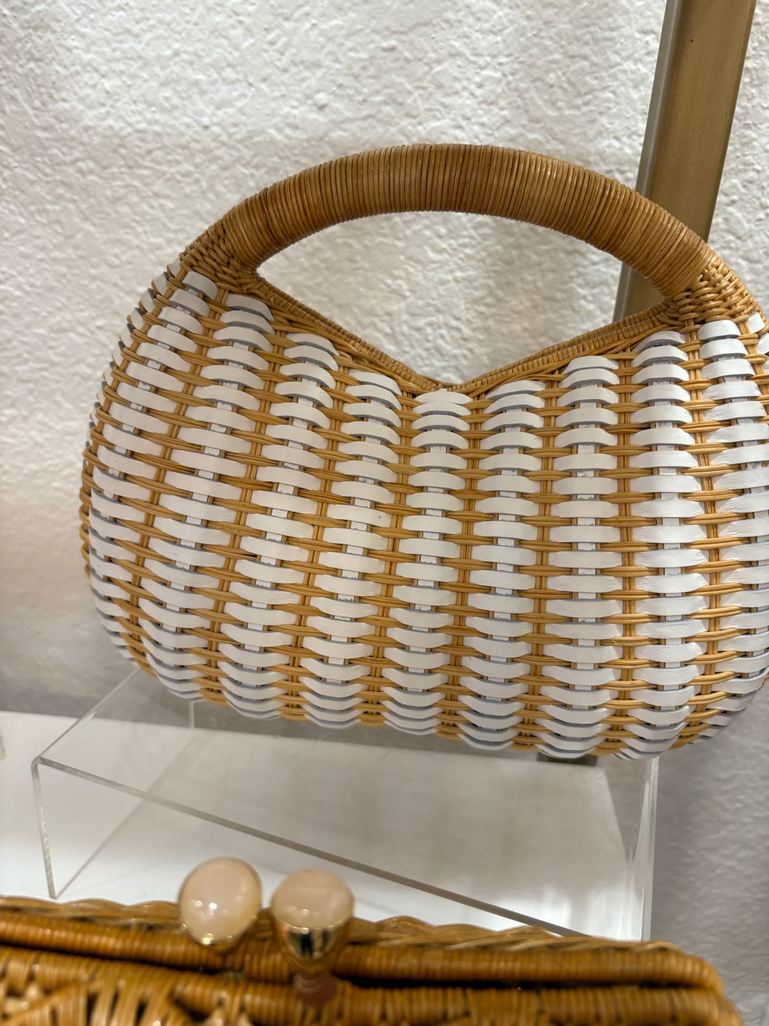 The Skye Light Wicker Bag in Light Honey/White by Serpui. More info and images coming soon.