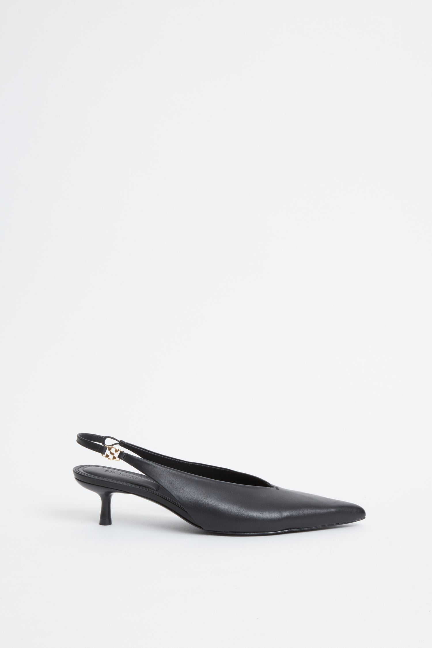 This sophisticated slingback kitten heel features a pointed toe and streamlined silhouette, exuding understated elegance.