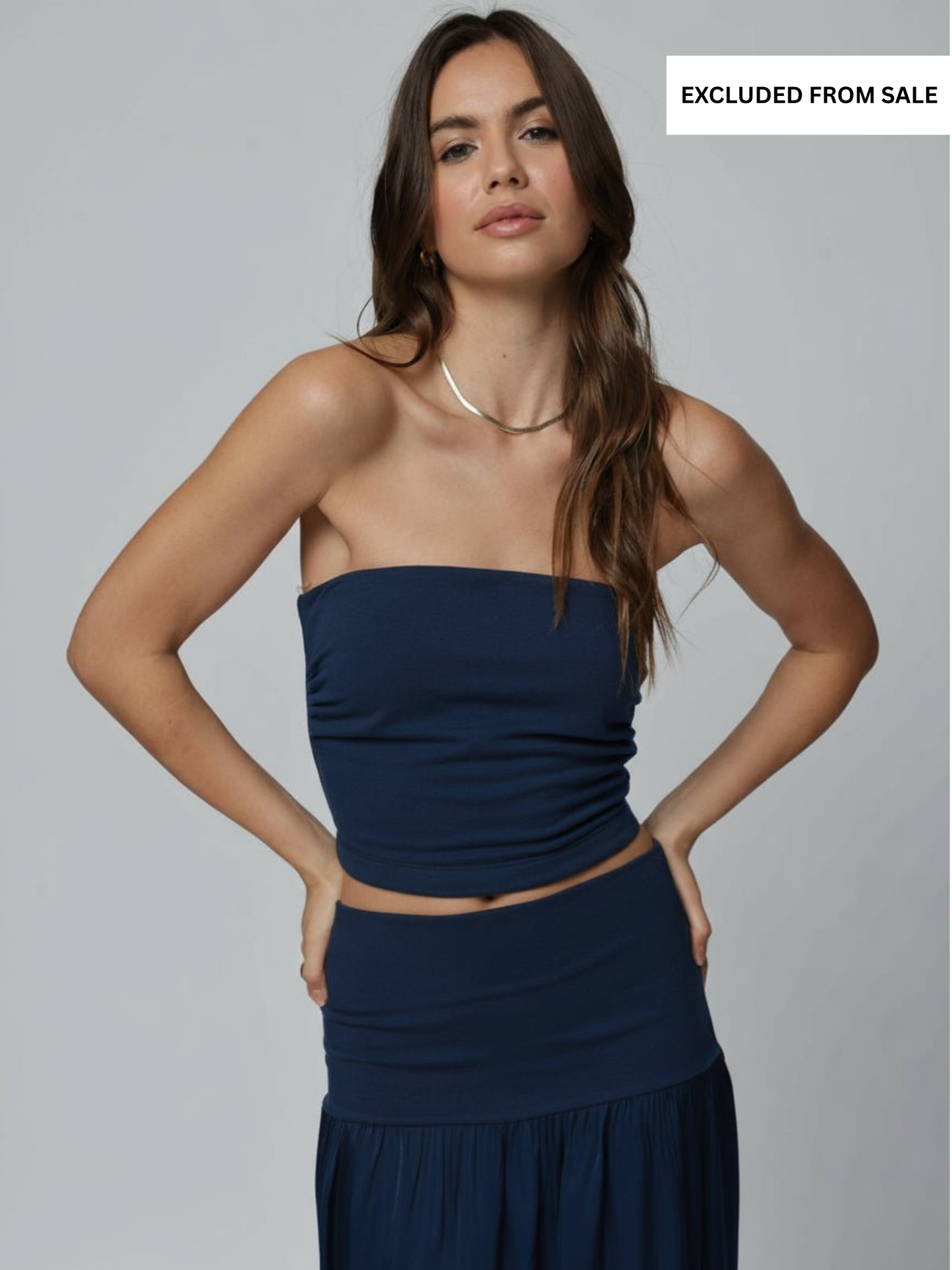 A classic strapless crop top, perfect for layering or wearing on its own. Made with 2 layers of smooth tencel cotton stretch to form to your body, and offer support. This top is a wardrobe staple for styling, versatile, and endlessly wearable. This seasons we love it styled back to the linen bubble skirt or belted linen Maxi Skirt