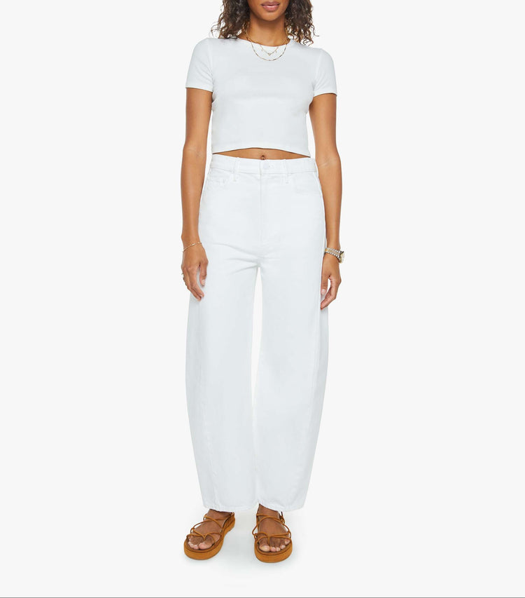Jeans designed to sit lower on the hips with with a wide, barrel leg, an ankle-length inseam and a clean hem. Made from rigid SUPERIOR denim, Picket Fence is a bright white with tonal hardware.