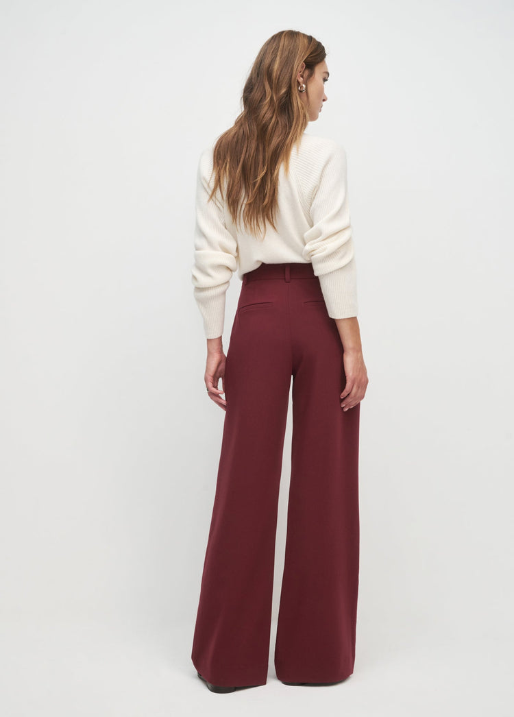 The Jones Wide Leg Pant has a high 12.25" rise and a wide leg with a 33" inseam that creates a super chic silhouette. While these burgundy trousers look great with anything (yes, anything), our favorite way to wear these pants is with the coordinating Dream Phoebe Bustier.