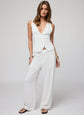 Fabric is a linen rayon blend, soft and casual. These have a straight leg, and mid rise that allows you to wear high and low on the hip. If you are in-between sizes, we recommend you size up to wear low. The back waist band features an elastic pannel for the best fit and comfort. Belt loops for when you want to polish off the look.