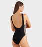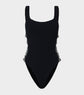 The Tiffany™ swim has a square neckline, low scooped back, and tonal cutout seersucker gingham bow detailing down both sides.