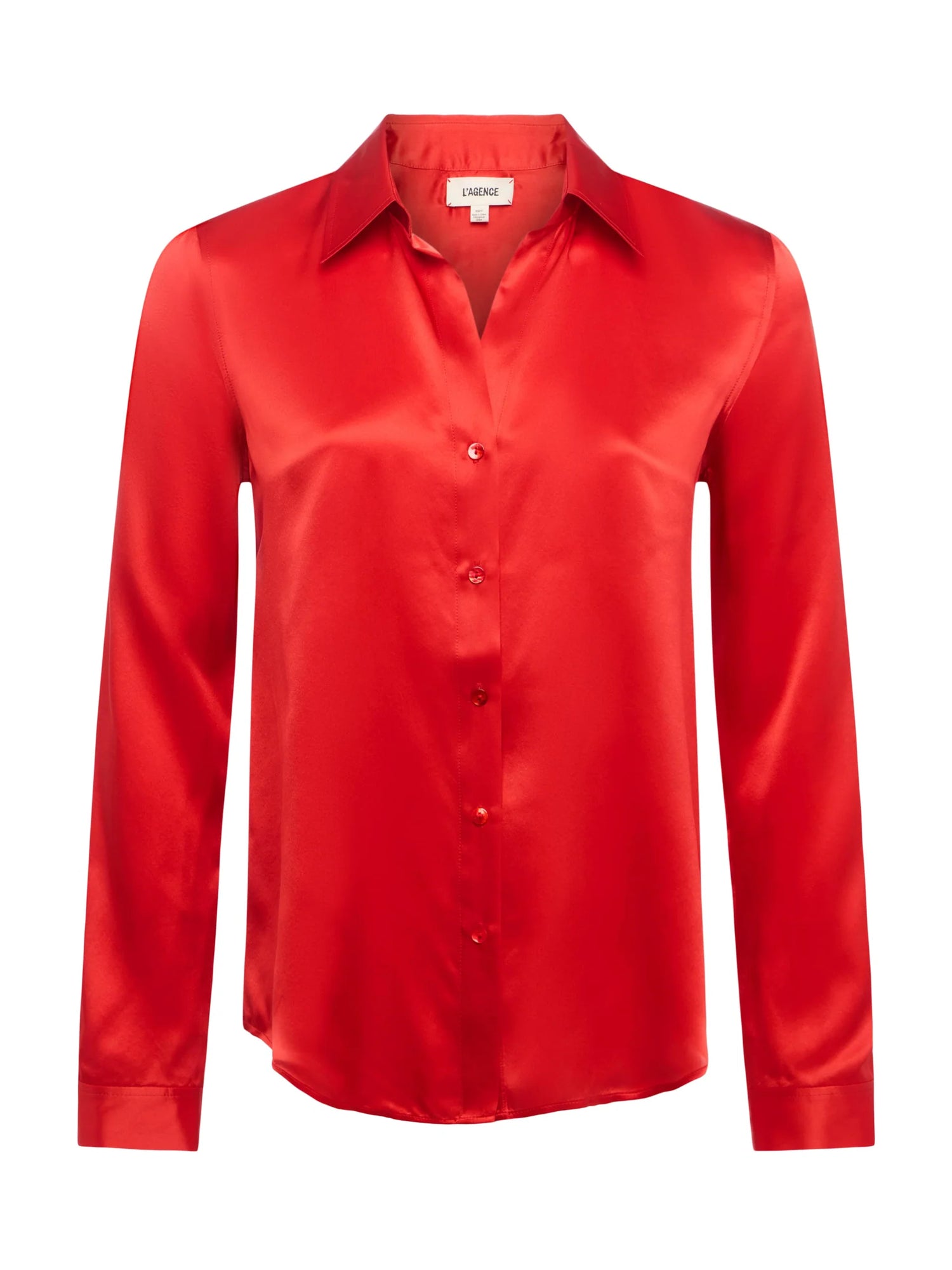The Tyler in engine red was featured in our Fall ‘25 NYFW presentation. This is the iconic long-sleeve silk button-down that belongs in every wardrobe. Reimagined each season in fresh colorways and prints, there’s a Tyler for every occasion.