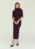 Short sleeve turtleneck sweater dress. Crossover bandeau detail. Shown here in Merlot.