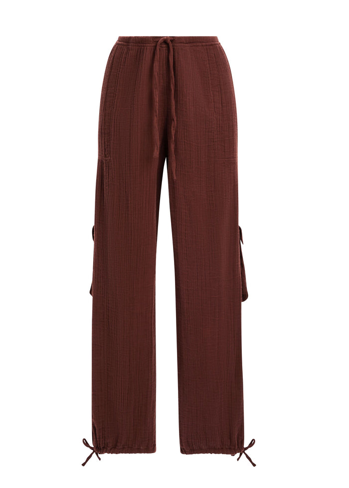 Low-rise cotton cargo pant with an adjustable drawstring waist and side pockets. Pair with the Yen Halter Top for a casual, co-ord look. Shown here in Coconut.