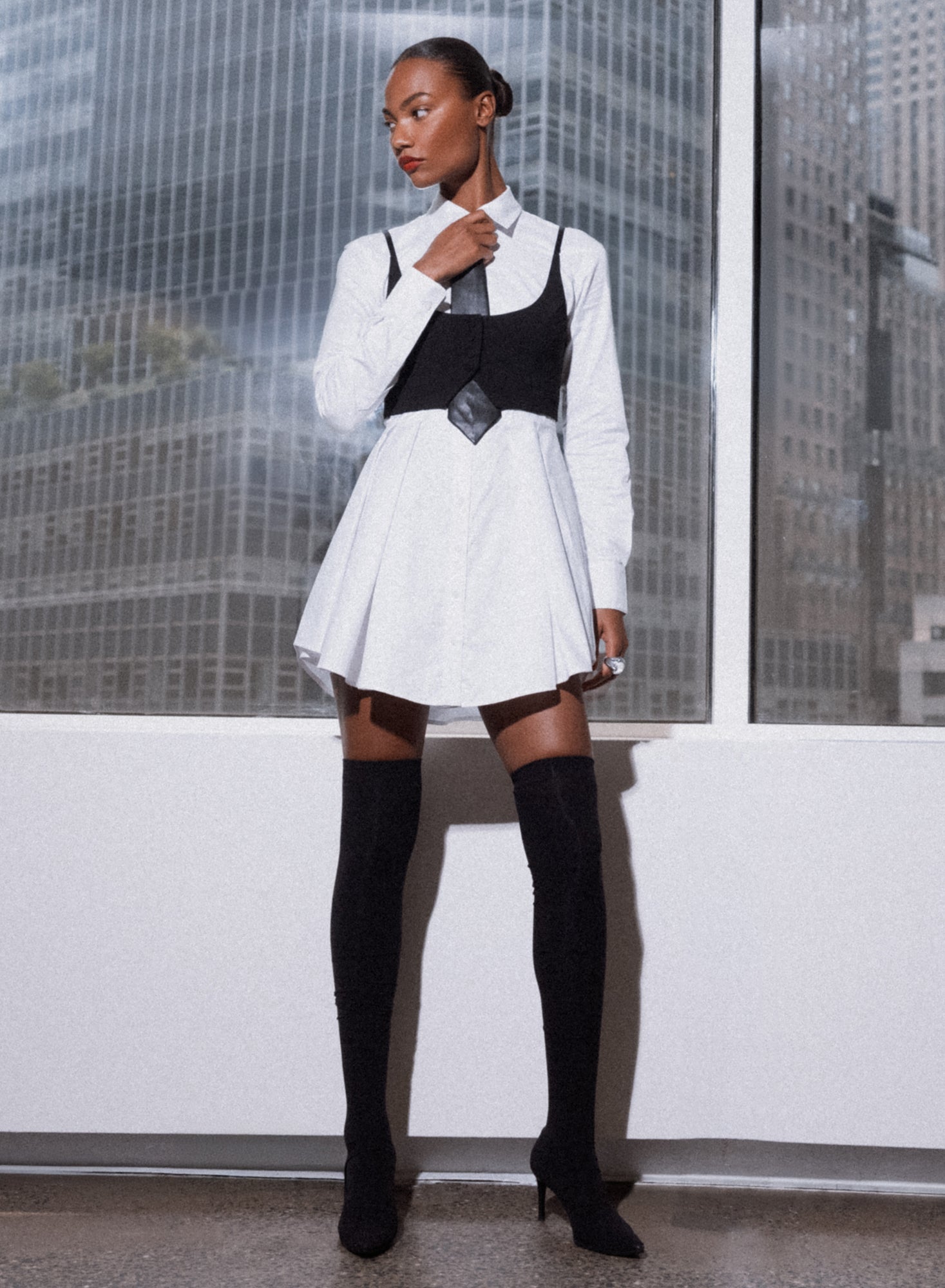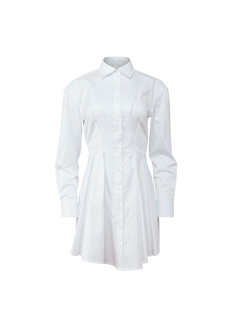Fleur Du Mal's poplin Zoe Shirt Dress, featuring traditional shirting details with front button closure and pleated skirt.